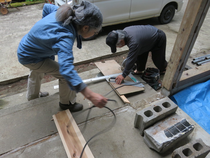 午後からは地元の現役大工さんに壁板の貼り方など教えてもらいました。