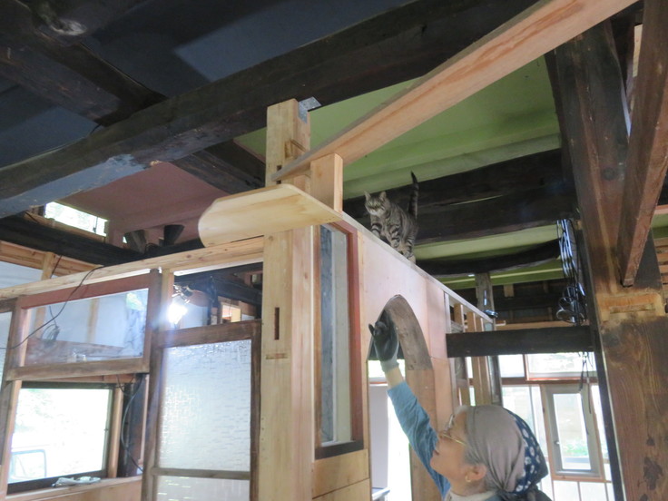 キャットウォーク(製作途中)からご挨拶?のホム。