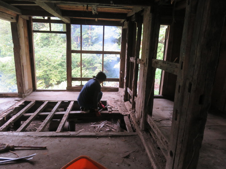 長い間冬囲いされていました。2階(中2階?)の窓は古い木枠の窓でガラスも割れ、しかも寸法もあっていなかったので、古い感じは良かったのですがこの家の他の部分で使われていた窓に取り替えました。