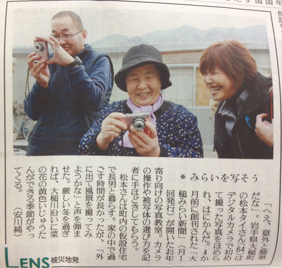 1月19日讀賣新聞の夕刊で大槌みらい新聞の写真教室の様子が掲載されました。おじいちゃん、おばあちゃんがカメラを手にしている様子が見ることが出来ます!