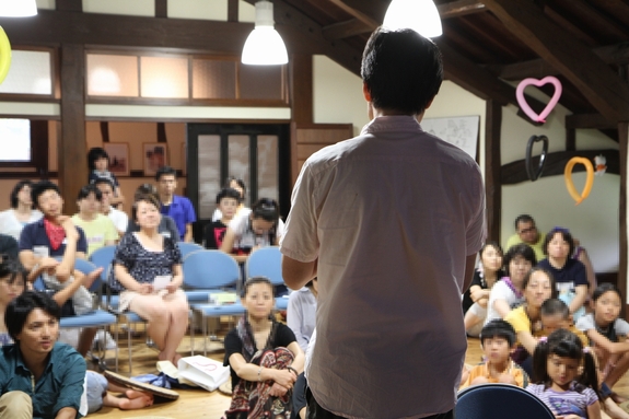 3)先生がプレゼンをしたあと、親御さん、子どもたちと一緒に「語らう会」を開きます。