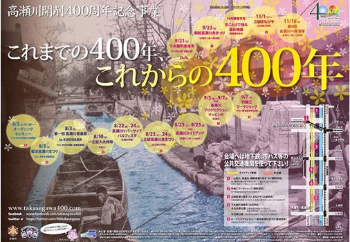 資金募集している高瀬川のライトアップは、実は400周年記念事業の一つで、全体では10以上の事業が一体となって記念事業となっています。
