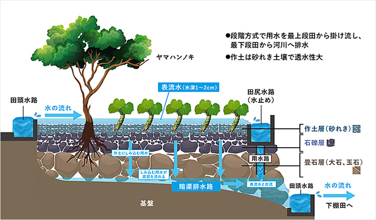 静岡県は、わさび産出額において全国の70%以上を占め「日本一のわさび産地」です。中でも伊豆地域発祥の栽培方法、棚田状の階段構造を持つ「畳石式」は世界農業遺産に認定されました。