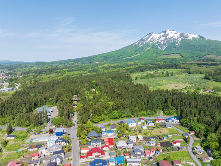 社殿群と廟所までが一直線上に並び、さらにその延長線上に霊峰・岩木山が重なるという配置は、極めて神聖かつ特異な構造であり、全国的にも極めて稀なものです。