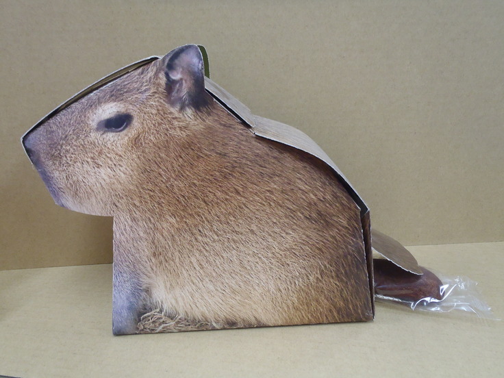 今日の画像は、先代のカピバラがよく展示場で元気にフンをして、片付けるとすぐにまたフンをして…担当スタッフがあきれていたところから発案された当館オリジナルグッズ「カピバラの落とし物」です。チョコ菓子が出てきます。おわかりかと思いますが、通常のお土産商品と異なり箱にかなり凝っていてそれは同時に箱にすごく制作費がかかっておることを意味します。食べた後の箱は飾ってください。リターン商品の中にもありますので、ぜひ。