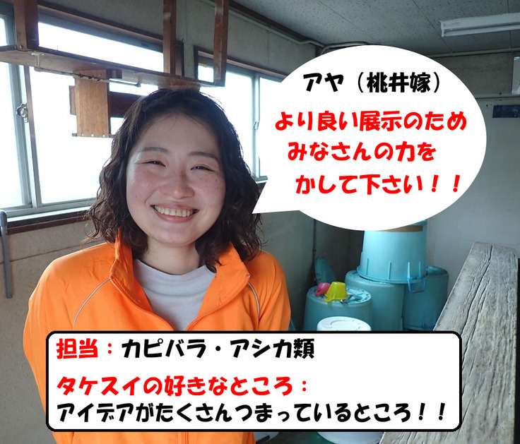 そもそもワタクシ、アヤはナニモノか!?という話ですが、約半年前にタケスイに移ってきて、アシカトレーナーをやらせてもらっています。