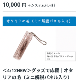 ▶︎グッズで応援|オタリアの毛(ミニ解説パネル入り)は、下記の画像をクリックすることで、該当のリターンの支援に移動します。