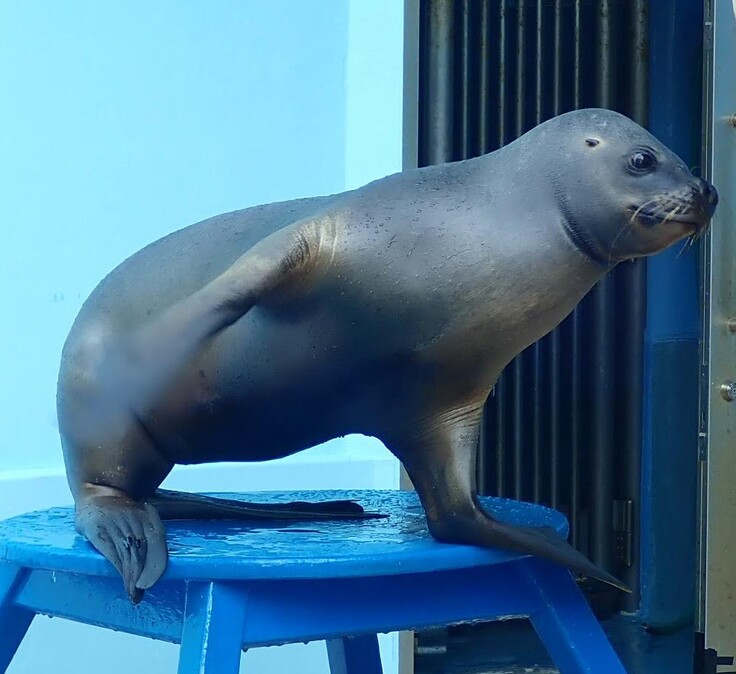竹島水族館にいるオタリアの「ラブ」(アシカショーにて活躍中!)の体毛を詰めたものです。年に1回だけ行う換毛時に抜け落ちた体毛をスタッフが集めました。貴重なオタリアの毛を手元で観察したり、触ったり、においを嗅いでみてください。アクリルのケースに入れて作ってあります。