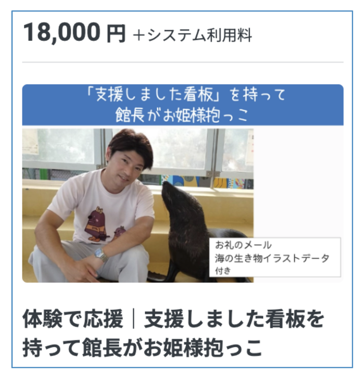 ▶︎体験で応援|支援しました看板を持って館長がお姫様抱っこをご支援されたい方は、下記の画像をクリックすることで、該当のリターンの支援に移動します。
