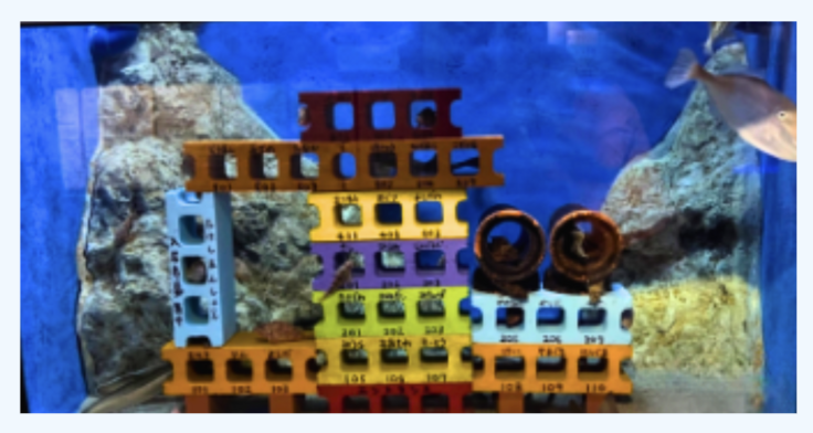 竹島水族館には「たけしまんしょん」という展示水槽があり、マンション風になったブロックにカサゴを代表する隙間が好きな魚たちが暮らしています。
