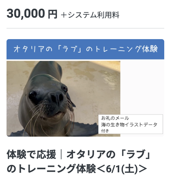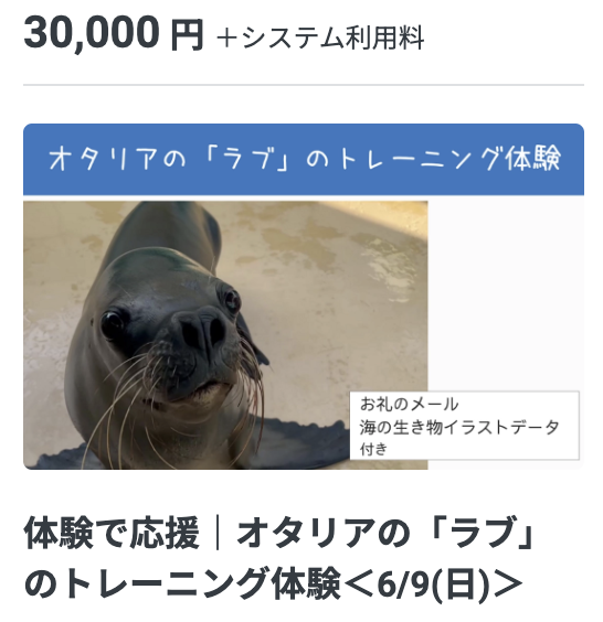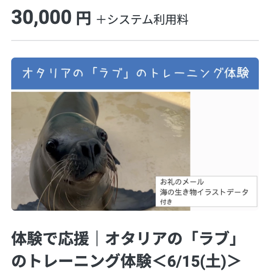 ▶︎体験で応援|オタリアの「ラブ」のトレーニング体験をご支援されたい方は、下記の画像をクリックすることで、該当のリターンの支援に移動します。