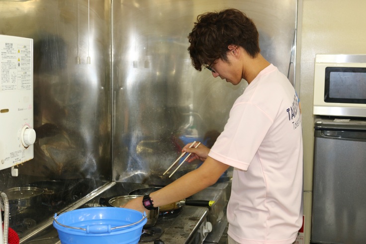 調理をする時は写真のように飼育事務所で調理をしています。