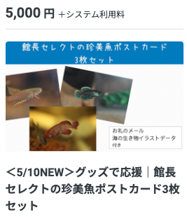▶︎<5/10NEW>グッズで応援|館長セレクトの珍美魚ポストカード3枚セットは、下記の画像をクリックすることで、該当のリターンの支援に移動します。