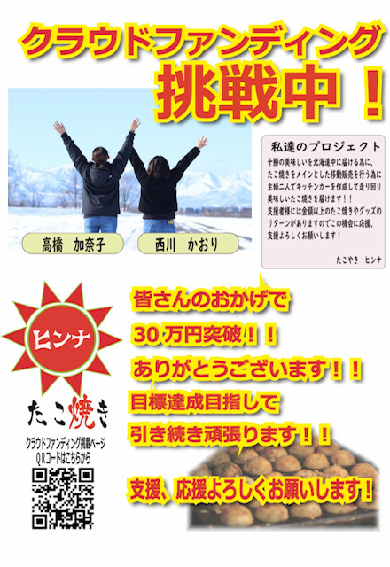 そして、支援して下さった方の為にも、そして自分達の為にも絶対に目標金額を達成して皆さんの元に美味しいたこ焼きをお届けしたいと思います。