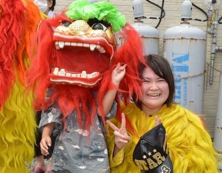 (獅子舞に着替えての一枚です)