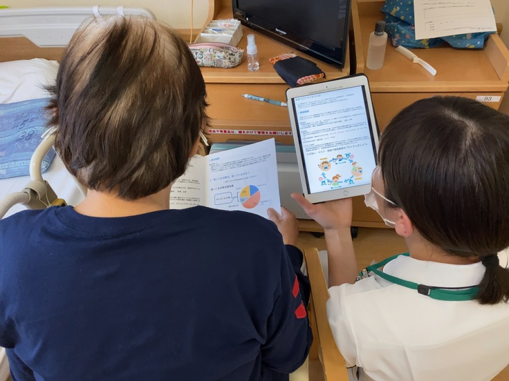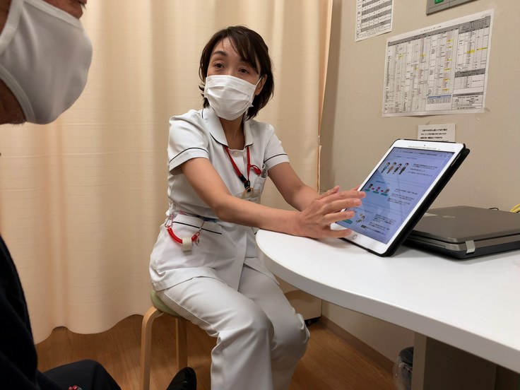 皆様からいただいた支援金を活用してタブレットを現場に購入することができました。今までは紙に印刷したパンフレットを使って指導を行っていましたが、タブレットを利用することで複数あるパンフレットを集約することが可能となりました。さらに動画などのコンテンツも使って感染対策の知識を分かりやすく指導することも可能となりました。