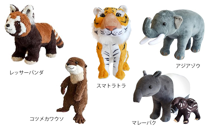 リターン商品紹介その⑬は、ズーラシアや野毛山動物園、八景島シーパラダイスなど、横浜市内はもとより全国の動物園・水族館で販売されているぬいぐるみをつくられている株式会社AQUAさんのぬいぐるみです。
