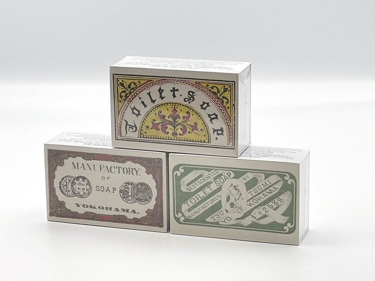 横浜開港資料館のミュージアムショップPORTER’S LODGEで人気の磯右ヱ門石鹸の1ダース(12個)セットです。 日本ではじめて製造された国産石鹸「堤磯右衛門石鹸」を、横浜開港資料館に寄託された当時の型をもとに復刻した商品です。堤家伝来の石鹸製造資料は横浜市の登録地域文化財となっており、石鹸は美しいレリーフまで忠実に再現され、パッケージも堤家所蔵の当時のラベルをデザインされたものです。 堤石鹸製造所とその資料については下記の当館のHPで詳しくご紹介しておりますので、ぜひご覧ください。 http://www.kaikou.city.yokohama.jp/journal/100/05.html