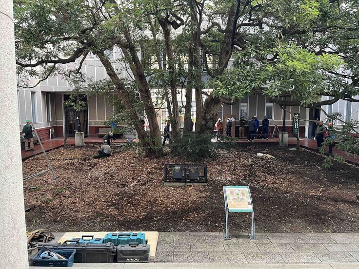クラウドファンディング「横浜開港の歴史「たまくすの木」に憩うバリアフリーデッキを作りたい!」ですが、いよいよバリアフリーデッキの整備に向けて作業が始まりました。