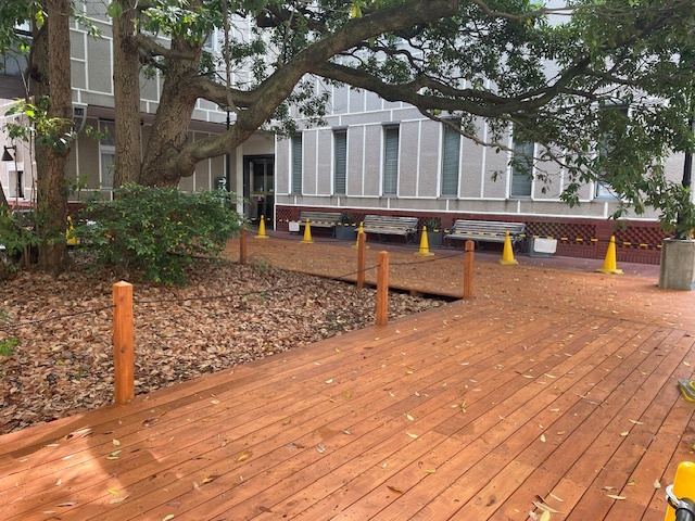 「たまくすの木」バリアフリーデッキ工事の進捗のお知らせです。