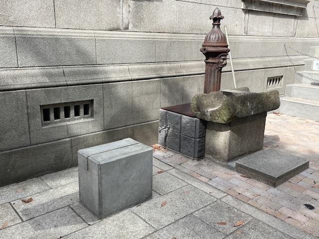 獅子頭共用栓の左隣にある礎石に銘板を設置いたします。