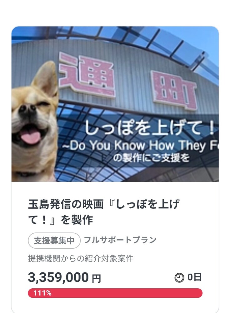 目標額達成も、早くに実現して、200人以上のご支援して下さいました。本当にありがとうございます!最後の最後まで、実行委員長を始め、メンバー一丸となり頑張っております皆さまと『しっぽを上げて!』を、
