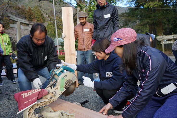 今回は、お店で使うベンチとテーブル、自転車スタンド作りを行い、DIY初心者方でもできるように、丸ノコの使い方など、レクチャーを行いながらゆっくりと製作していきました。