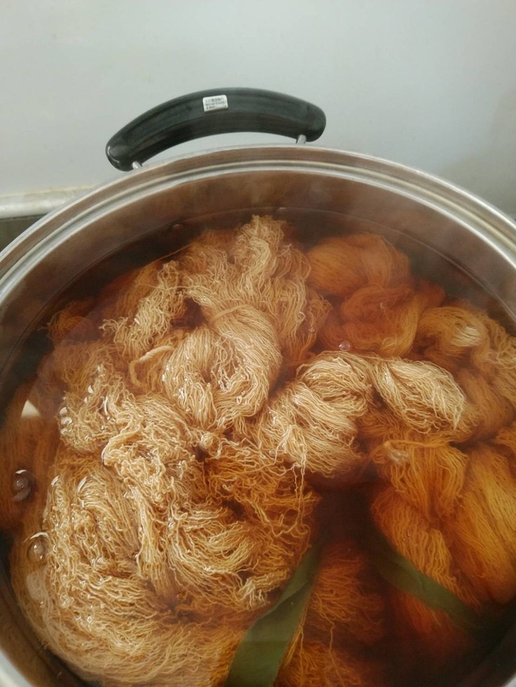 丹波布の原材料は綿というお話しをしました。それを草木で染めて色をつけます。