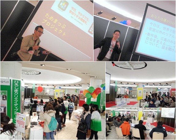 先月末のご報告が遅くなりましたが、広島市中心部の地下街中央広場にて、街頭発表会「ひろしまクリエイティブミーティング」参加のご報告です。