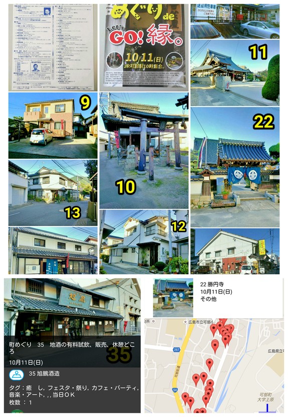 「町めぐり」という、歴史的町並みが残る旧街道沿いに、造り酒屋でのおちょこがもらえる300円の有料試飲や、醤油醸造所などの商家や町家、普通の住宅でのカフェやフリーマーケット、地元野菜販売など、散らばる各ポイントを「案内マップ」でめぐるイベントで普段は人影もまばらな町が一気に活気づくイベントです。