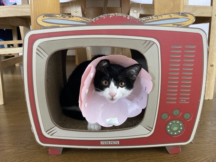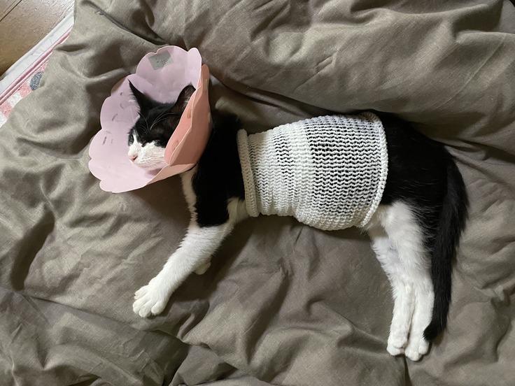 タムは腹水を抜き、カラーをつけた状態でも食欲はあり、しっかりご飯を食べてくれました。