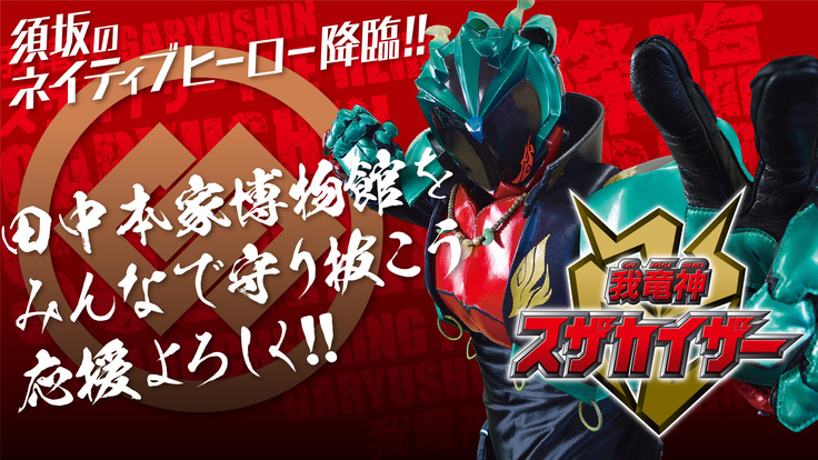 スザカイザーは、須坂の八丁鎧塚古墳から蘇った古の戦士であり、我竜神です。田中本家博物館は須坂の文化遺産を守り、スザカイザーは悪の手から須坂を守る存在です。