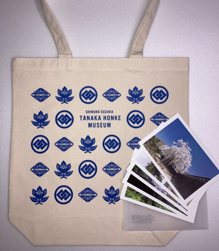 画像は、今回の返礼品として新たに制作しました「オリジナルトートバッグ」「庭園絵葉書セット」です。ミュージアムグッズとしても販売いたしますので、ご来館の際は手に取ってみて下さい。トートバックは、使い勝手の良いサイズで幅広い用途で使えそうです。