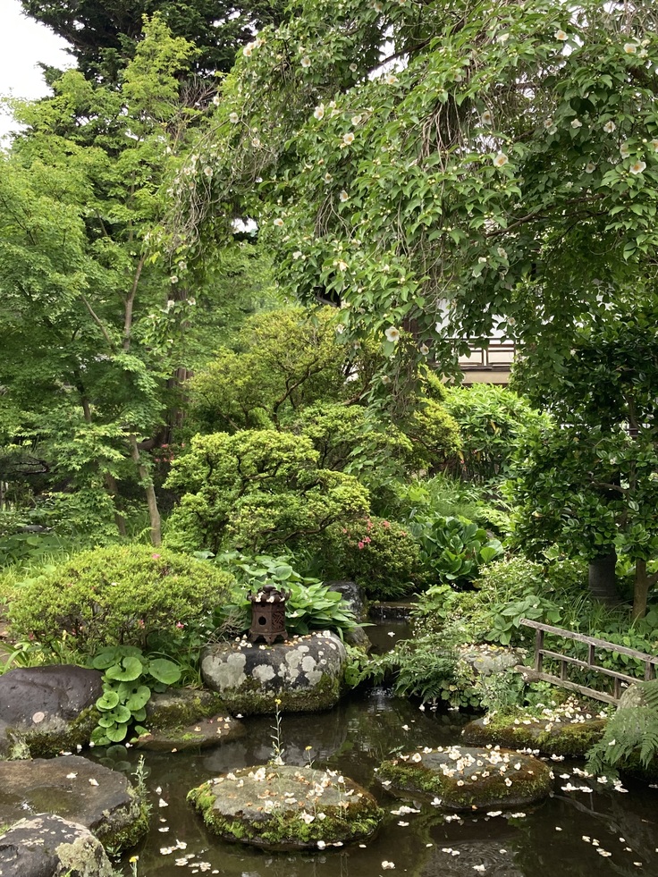池の水のせせらぎ、沙羅の花が静かに落ちていく姿が儚く、人の心を惹きつけます。