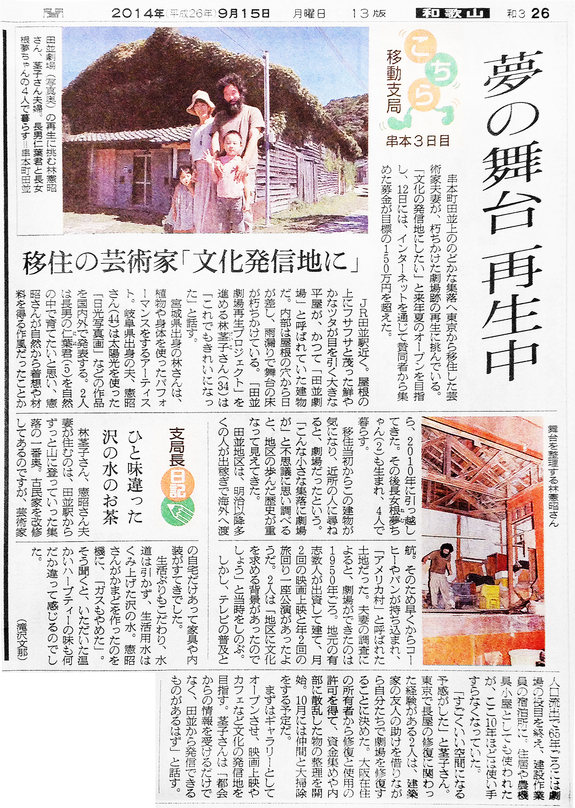 9月15日付けの朝日新聞(和歌山版)にて、田並劇場と林家、そして田並のことなど紹介して頂きました!