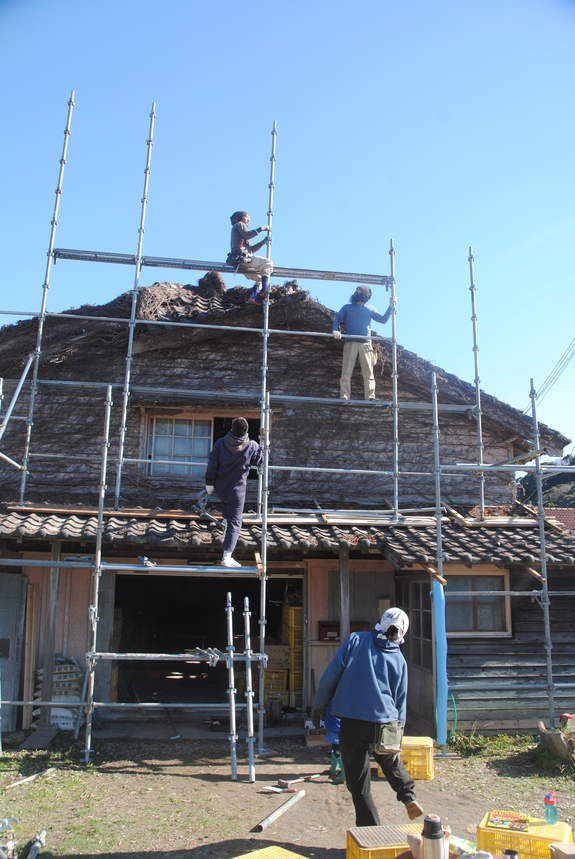 いよいよ足場組み。元鳶の友人の指導で正面組み上がりました。