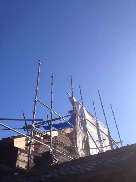 破風板取り付け完了! 全く落ちてしまっていた部分、そして建物の顔となる部分です。