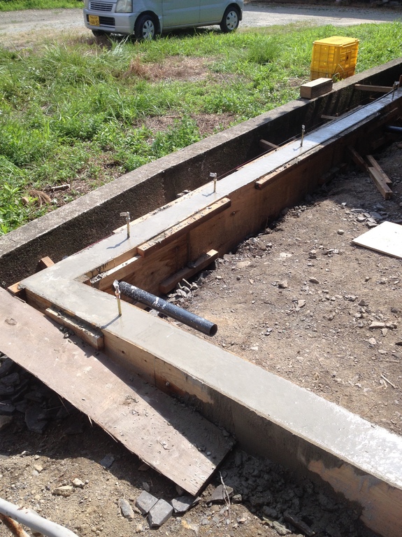 キッチンをまるまるやり直すための基礎コンクリ打ち。コンクリの重みで多少ゆがんだが、まあまあの出来。