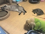 ついこの間まで野良猫で、大人の猫に混じって必死でエサをもらいにくる生活をしていたのに、2週間後にはもうあたたかいお家で暮らせるなんて!しかも先輩猫さんもいるから、寂しくないですね。