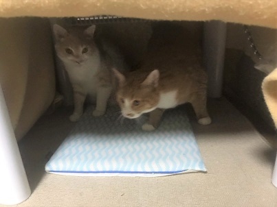 怖がりさんたちは、右の写真の向かって左がクリーム(メス)、右がきなこ(メス)。そしてもう1匹下の写真↓は きなお(オス)です。