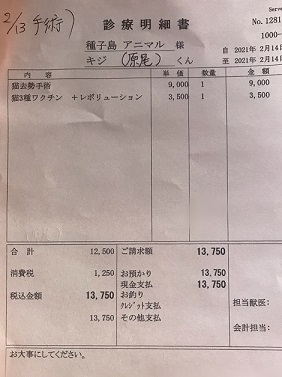 2頭目:クロチュー(自宅保護猫)オス 2月4日去勢手術・5種混合ワクチン・検査