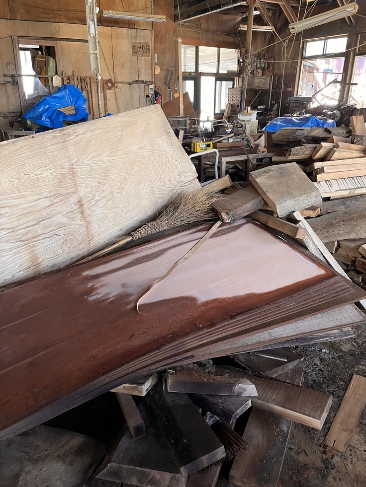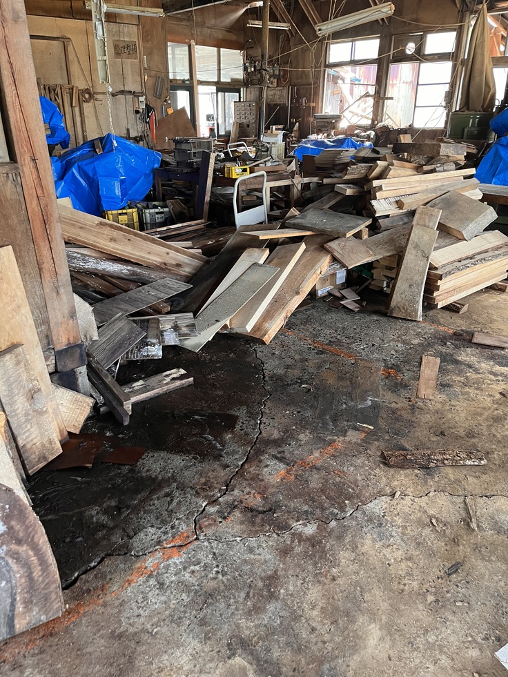 今日は友人に手伝ってもらい、工場内の倒れたベニヤなどを片付けました。