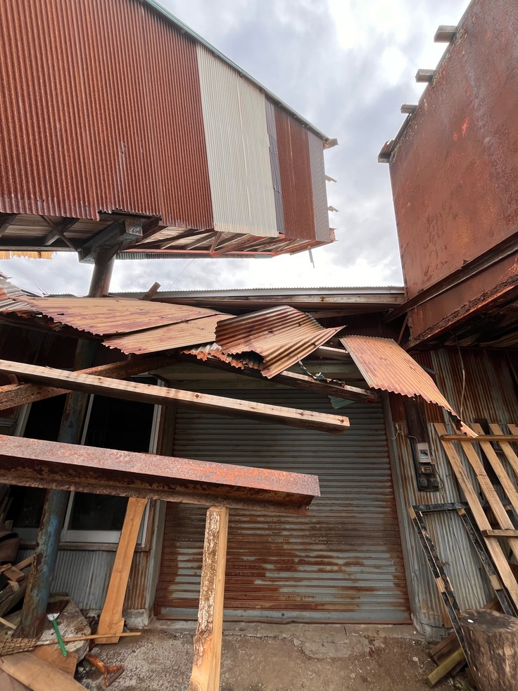 工場隣のご住居に対し、工場2階の屋根が今にも崩落しそうな状況でしたので