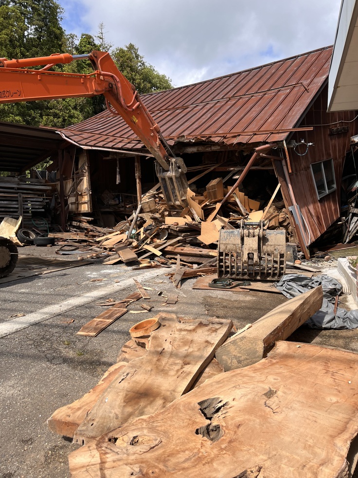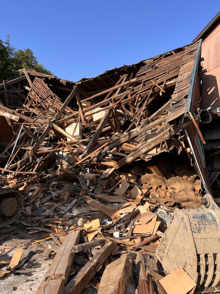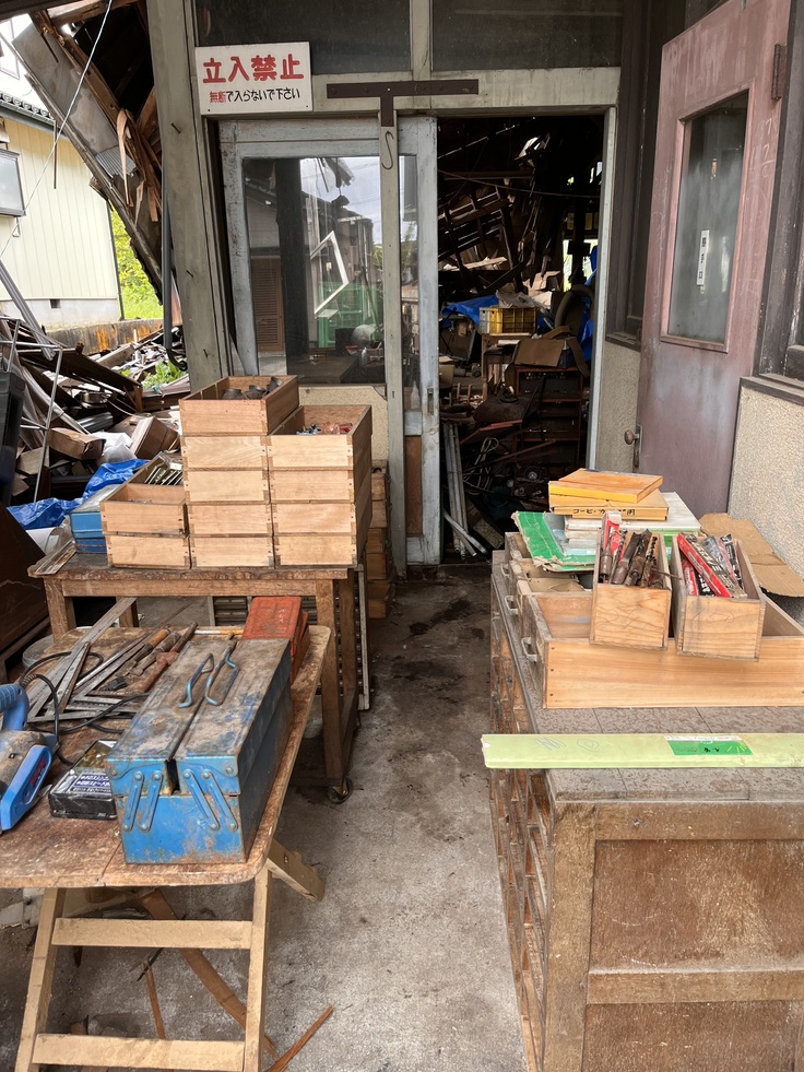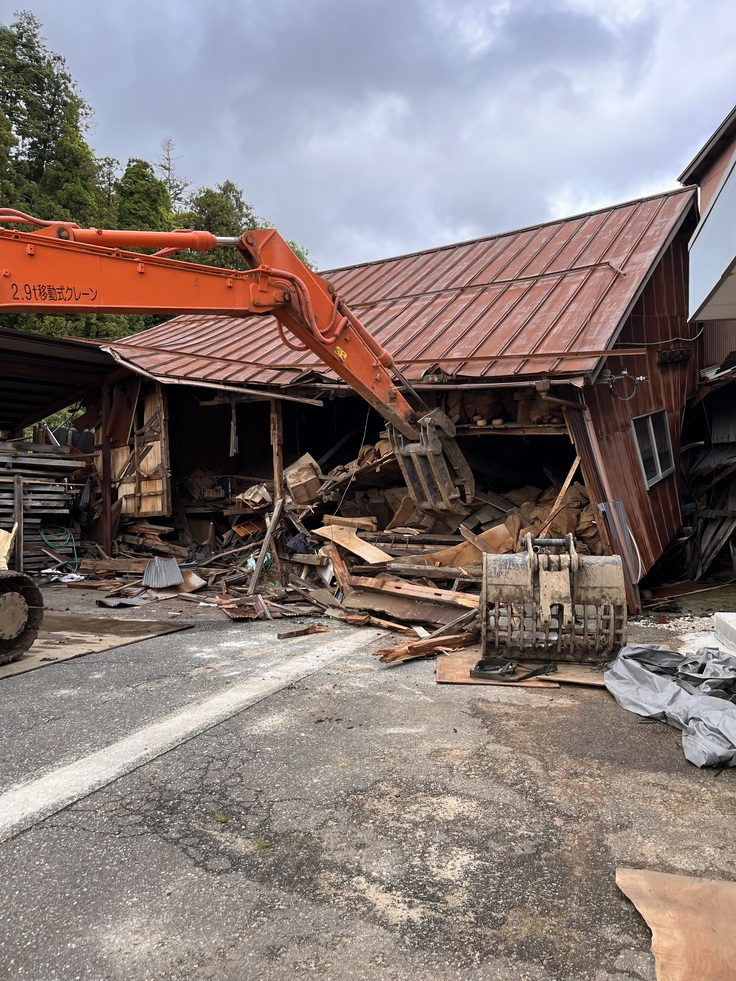 地震で1階が潰れてしまい、材料を取り出す事が出来なくなっていました。