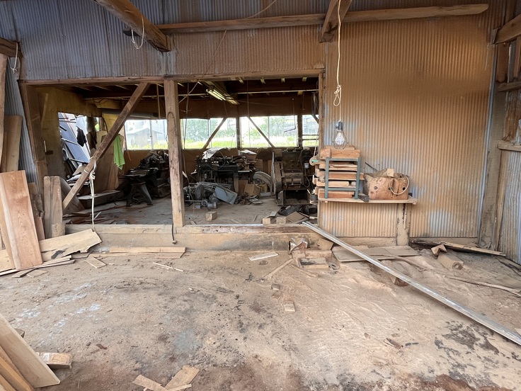解体は道路側から行われる予定で、そちらの建物は昨日片付けが終わったのですが、まだ作業場には残っているものもあり、出来る範囲で取り出しました。