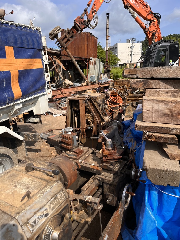 旋盤を移動させ場所を確保したのち、小型機械から搬出していきました。