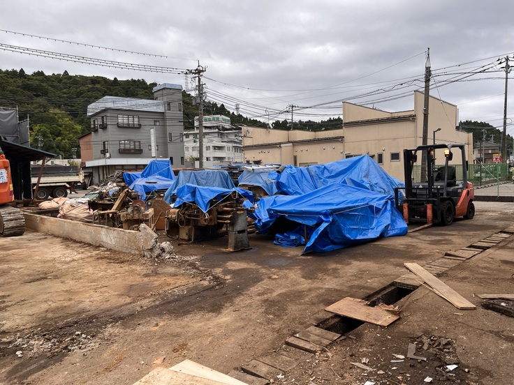 これが、思った以上に大変でフォークリフトの爪が掛からなかったり、ワイヤーで吊り上げてもバランスが取れなかったりと悪戦苦闘しました。