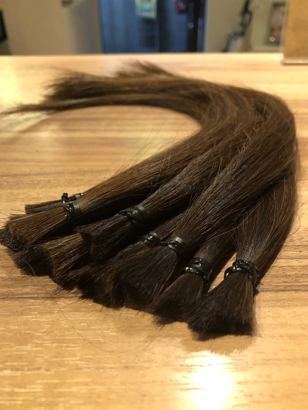 先日のヘアドネーションカットでこれだけの髪の毛を取らせていただきました!