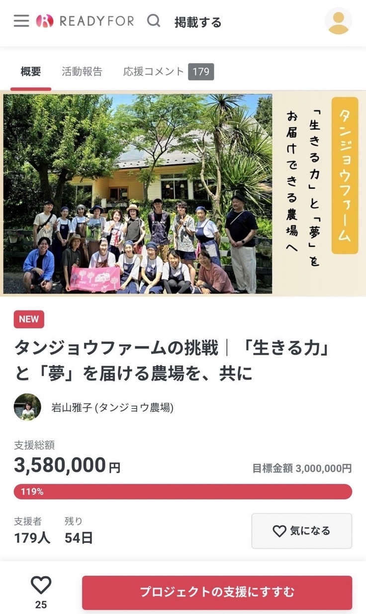クラウドファンディングに挑戦開始をさせていただいてから30時間ほどで第一目標の300万円を達成させていただきました。驚く勢いに…言葉もありません。