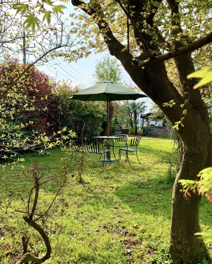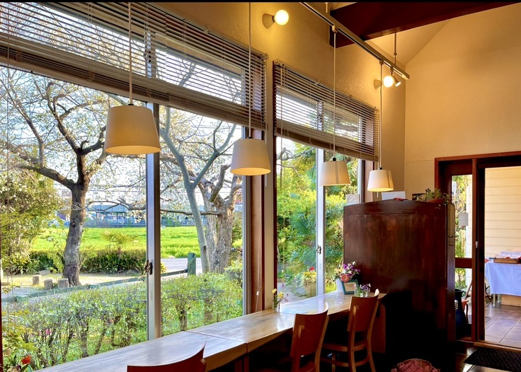 写真は私が大好きなファームキッチンからの春の景色です。この景色から忙しい夏に向けての力をもらっていました。清らかな白い山桜……必ず残します!